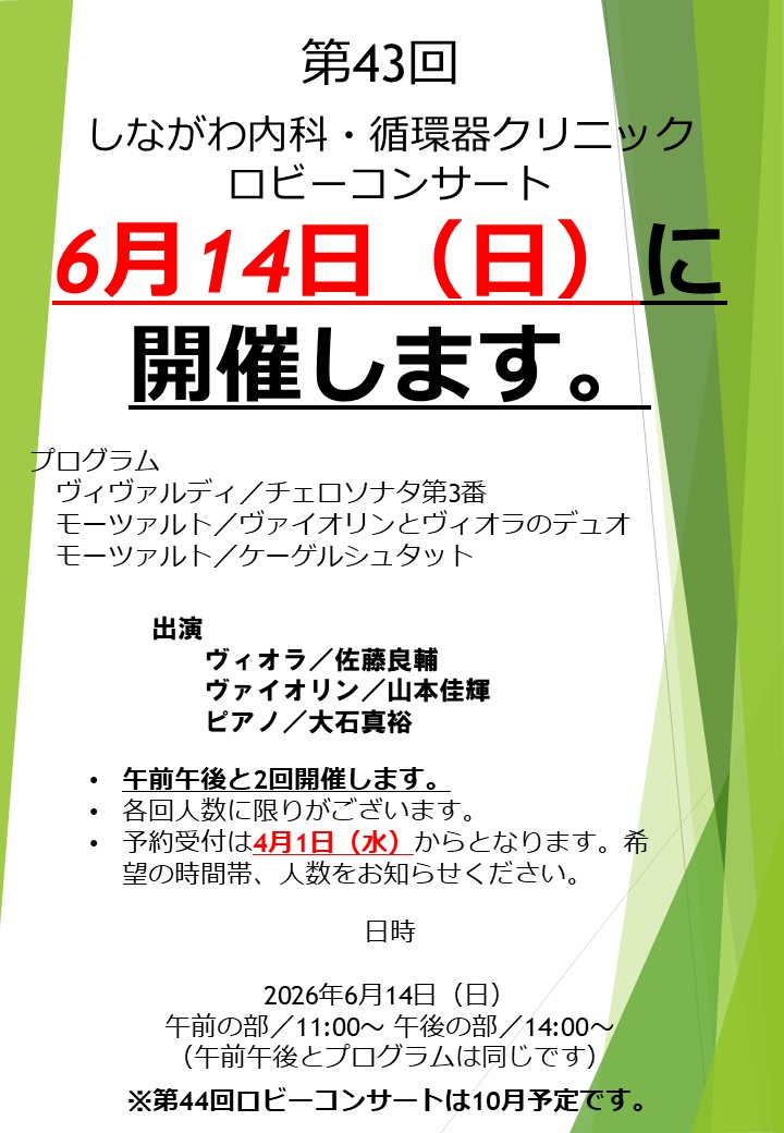 こんにちは。しながわ内科・循環器クリニックロビーコンサート主宰の佐藤良輔です。